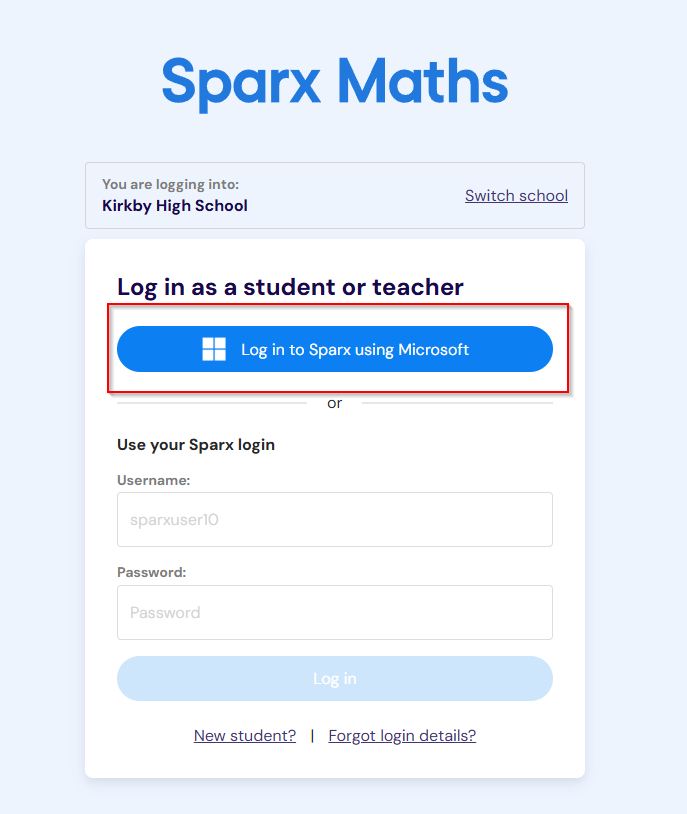 - Students should then select "Log in to Sparx using Microsoft" and enter their school credentials to access Sparx.
