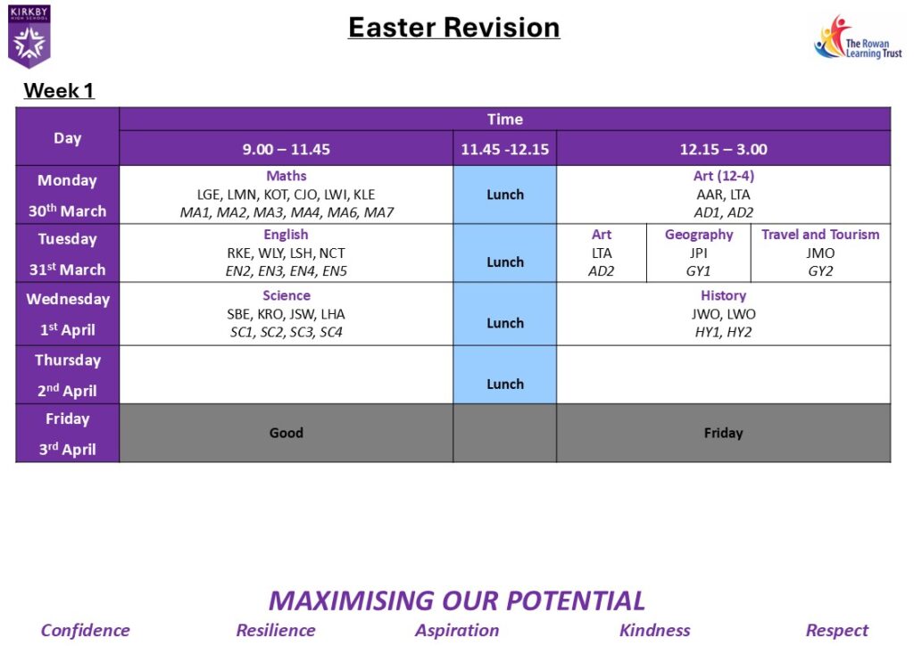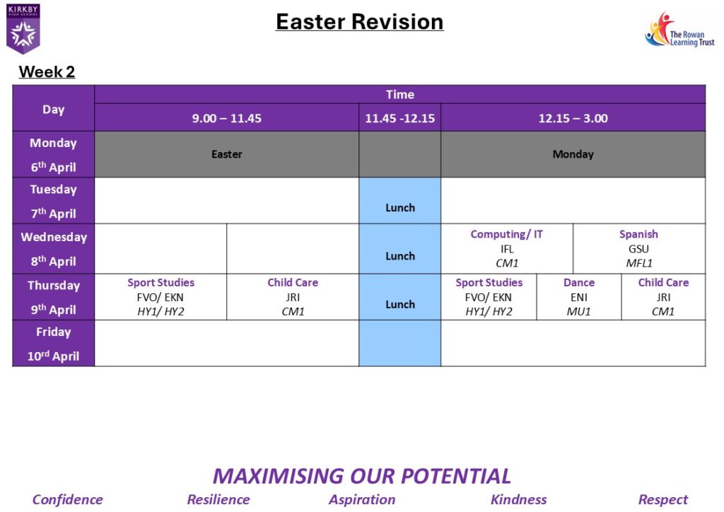 CLICK HERE - Easter Revision Letter - Wednesday 25th March 2026
