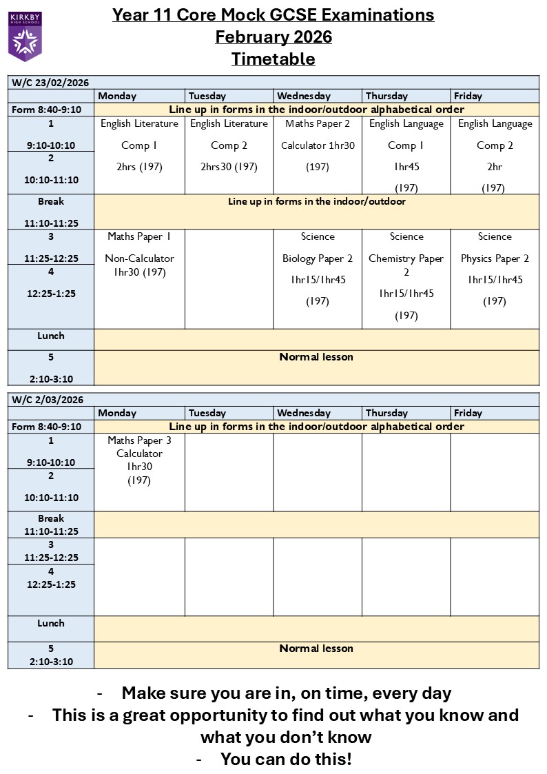 CLICK HERE - Year 11 Mock Exam Timetable