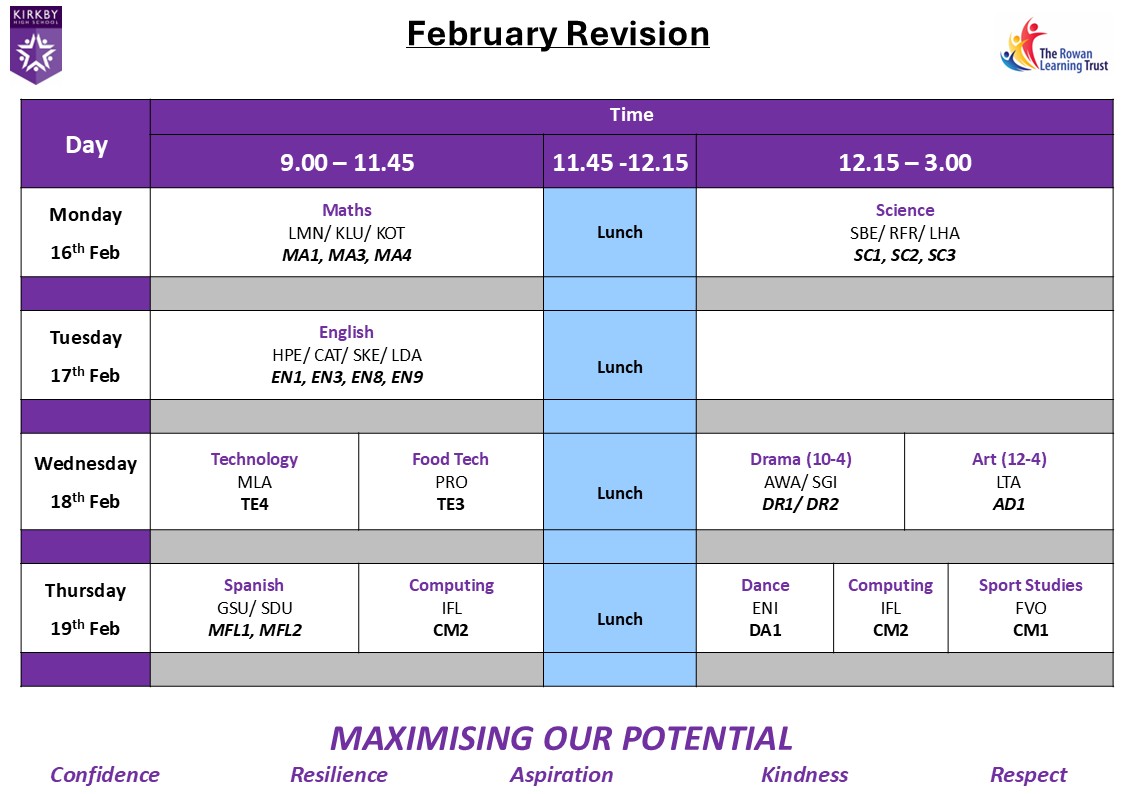 February Half Term Revision
