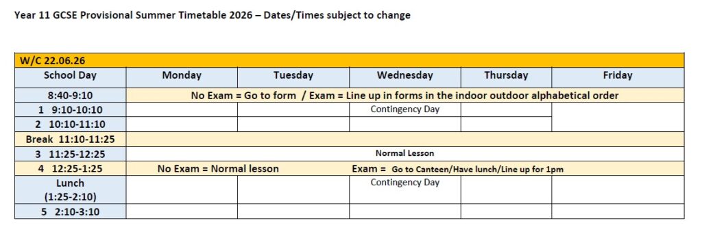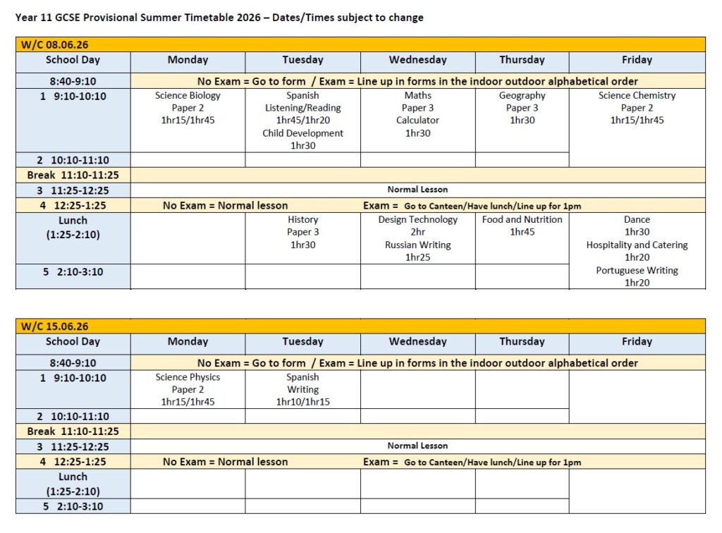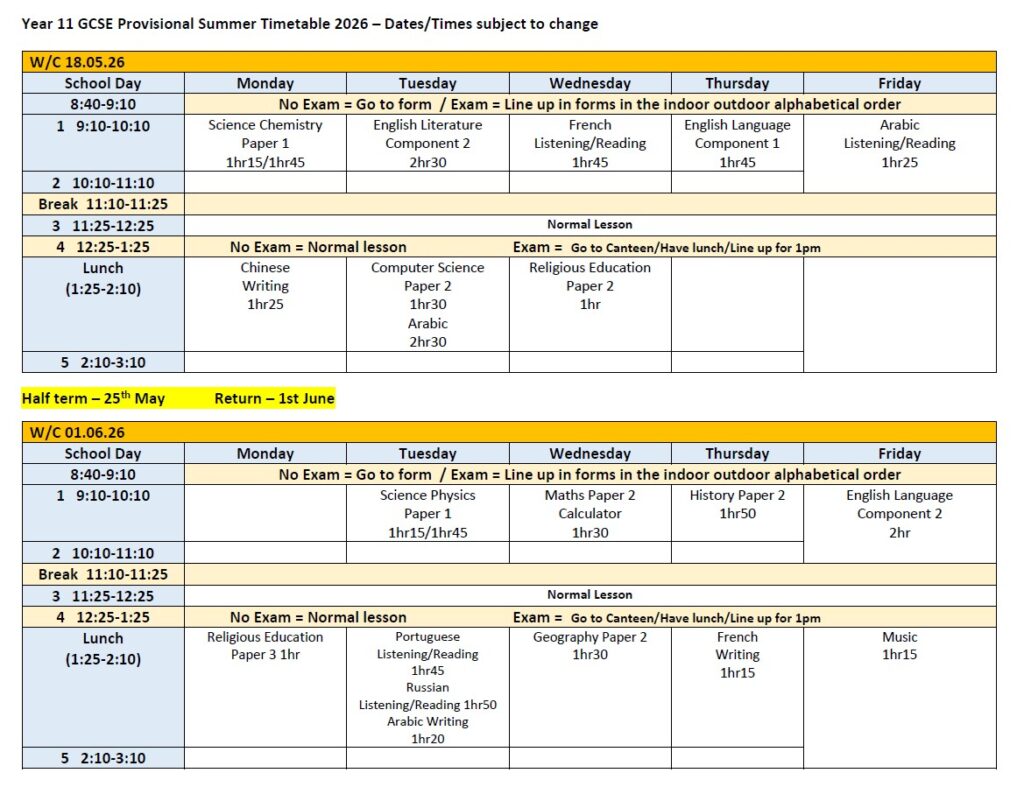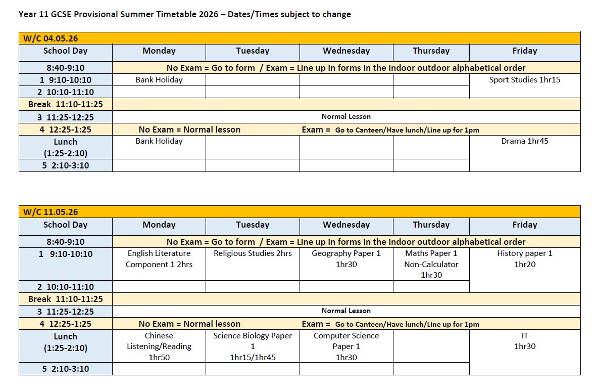 Year 11 Exam Information